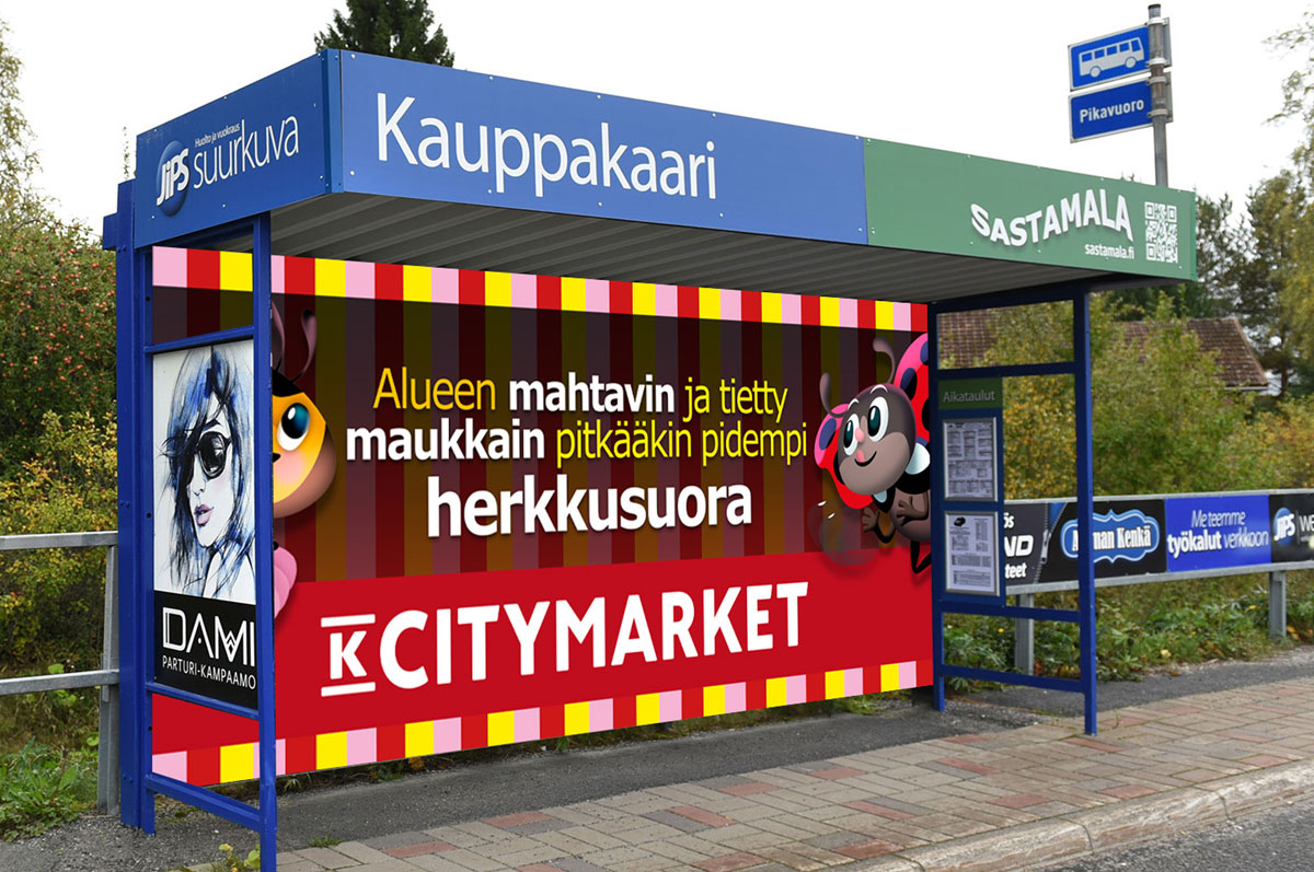 Mainoskilvet sopivat esimerkiksi: