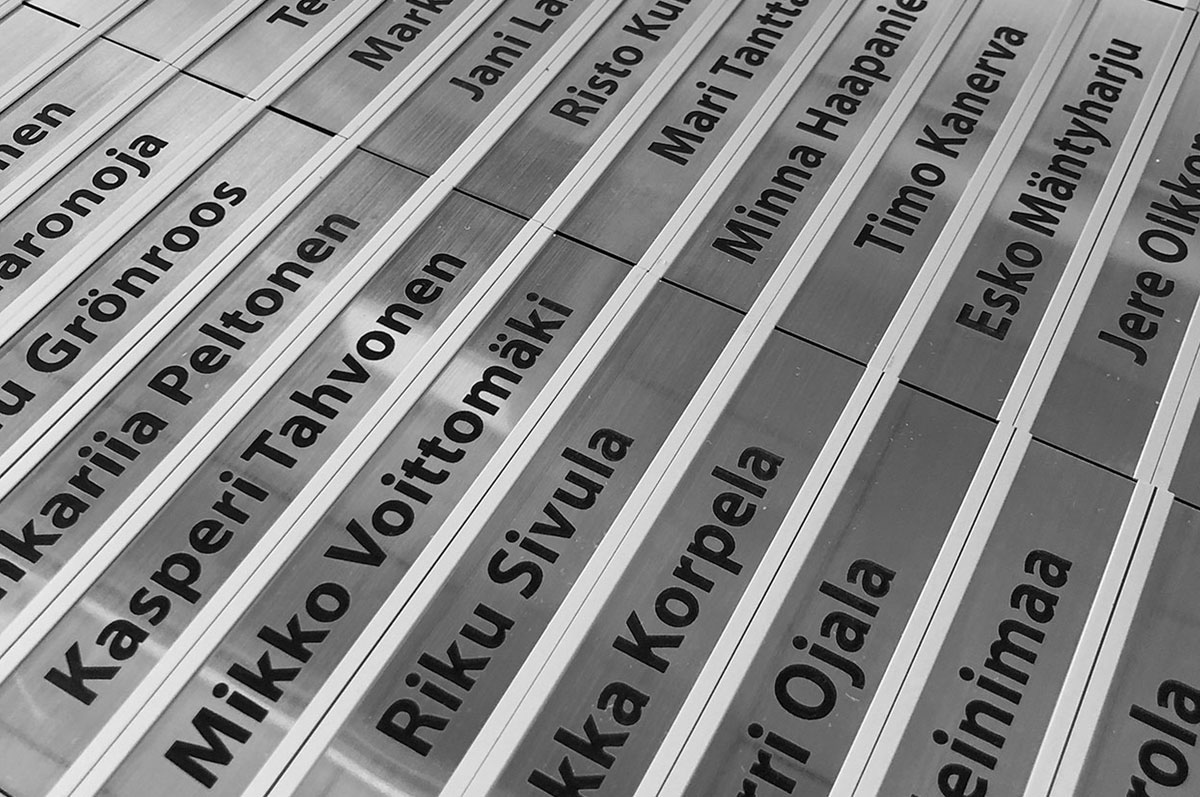 Tuotamme kilvet laserkaiverrettuina muovi-, alumiini- ja teräsmateriaaleista, mikä takaa tarkan ja pitkäikäisen lopputuloksen. Kaiverrus kestää hyvin kulutusta, kemikaaleja ja vaihtelevia olosuhteita, minkä vuoksi kilvet soveltuvat erinomaisesti myös vaativiin teollisuusympäristöihin.