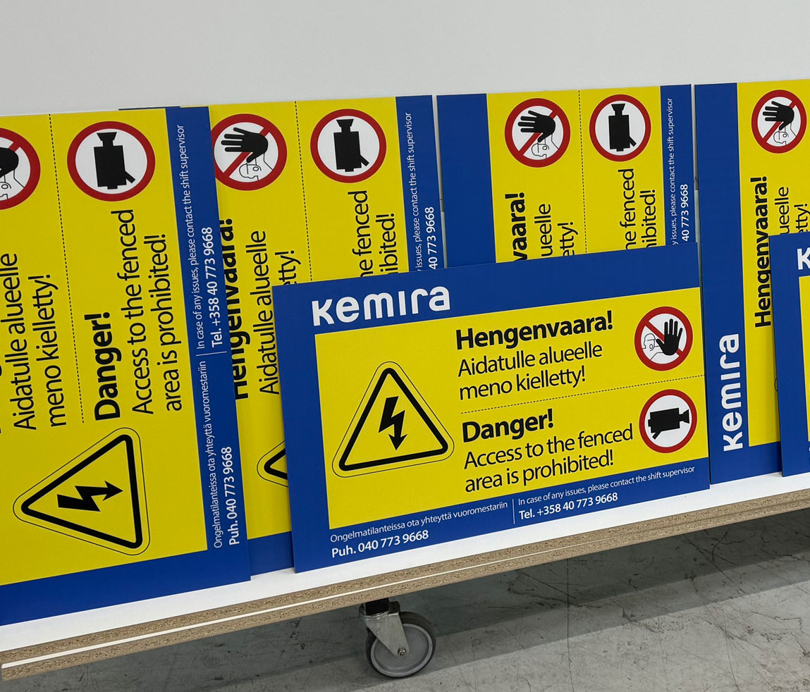 Tarjoamme laadukkaita turva- ja varoituskilpiä sekä teollisuusopasteita, jotka soveltuvat erilaisiin työympäristöihin – tuotantotiloihin, varastoihin, työmaille ja julkisiin tiloihin. Kyltit suunnitellaan selkeiksi ja helposti ymmärrettäviksi, jotta viesti välittyy nopeasti myös kiireisessä työympäristössä.