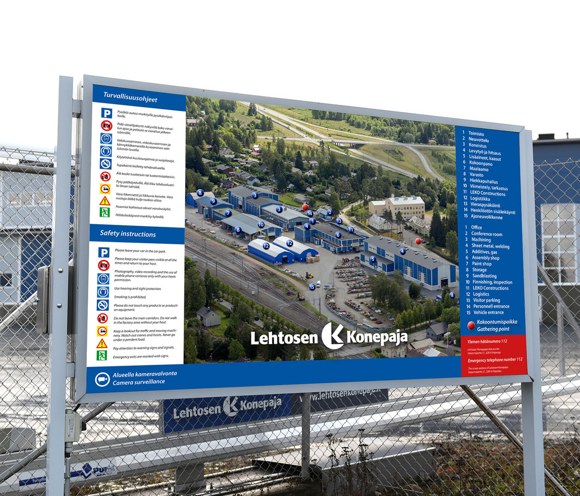 Suunnittelemme, valmistamme ja asennamme teollisuusopasteet kaikkiin kohteisiin – tuotantolaitoksista toimistoihin ja työmailta sairaaloihin.